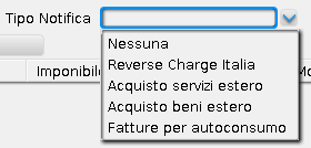 Impostando il flag Reverse Charge, possibile solo per fornitori italiani, il tipo notifica verrà impostato automaticamente  come “Reverse Charge Italia”.