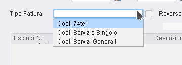 La riga successiva permette di selezionare 3 parametri per registrare nel modo corretto la fattura costi, vediamoli nel dettaglio,