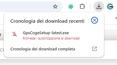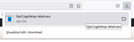 Cercate il nome del file scaricato, GpsCogeSetup-latest.exe, e cliccate su di esso per avviare il processo di installazione.