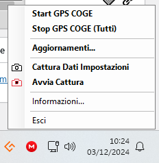 Se non vedete l’icona potrebbe essre nascosta, in questo caso cliccate sul segno ^, mostrerà le icone nascoste, cliccate sull’icona del gestionale e si aprirà un menu: